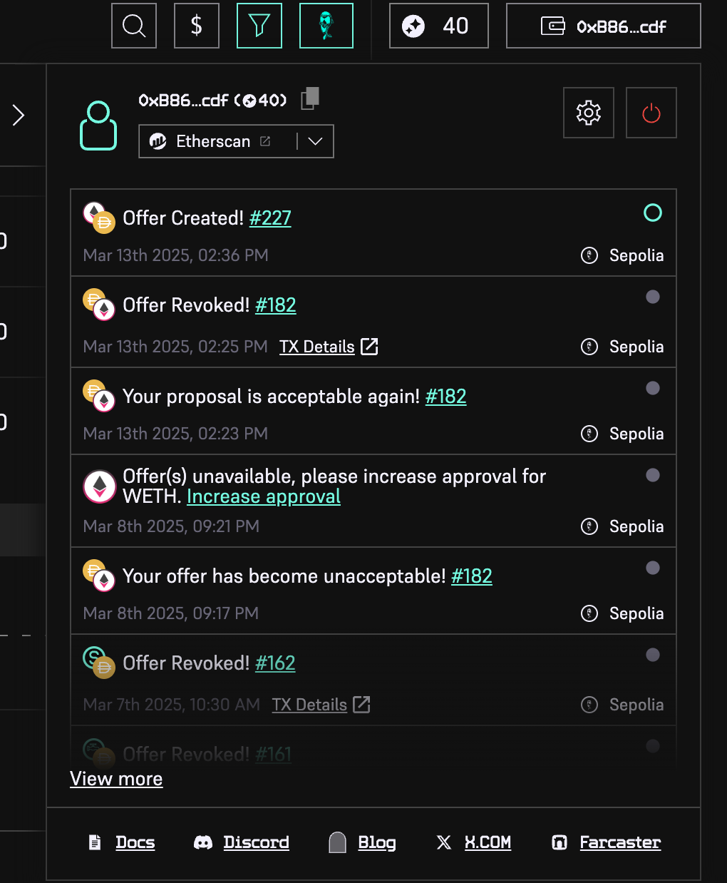 Click on your wallet on the top right corner to open the notification center and review your settings.
