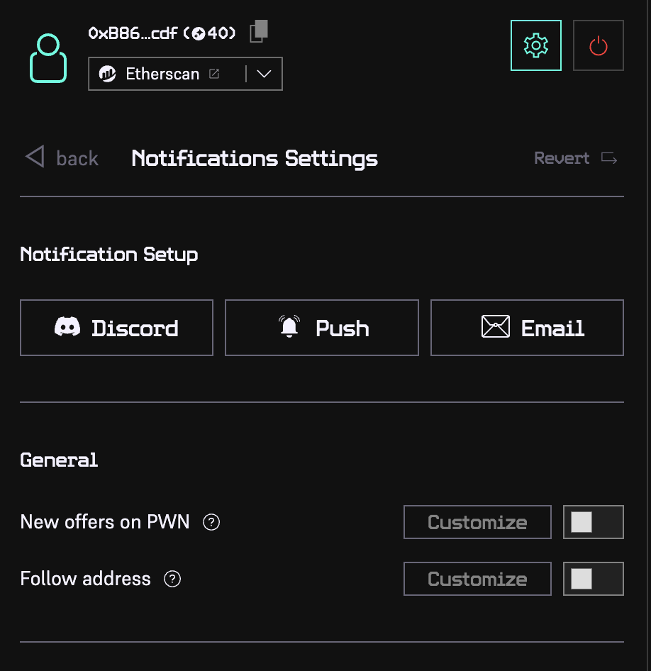 You'll receive notifications about the activity of an other address. This is useful if you have more wallets you use on PWN but want to receive notifications on one address.